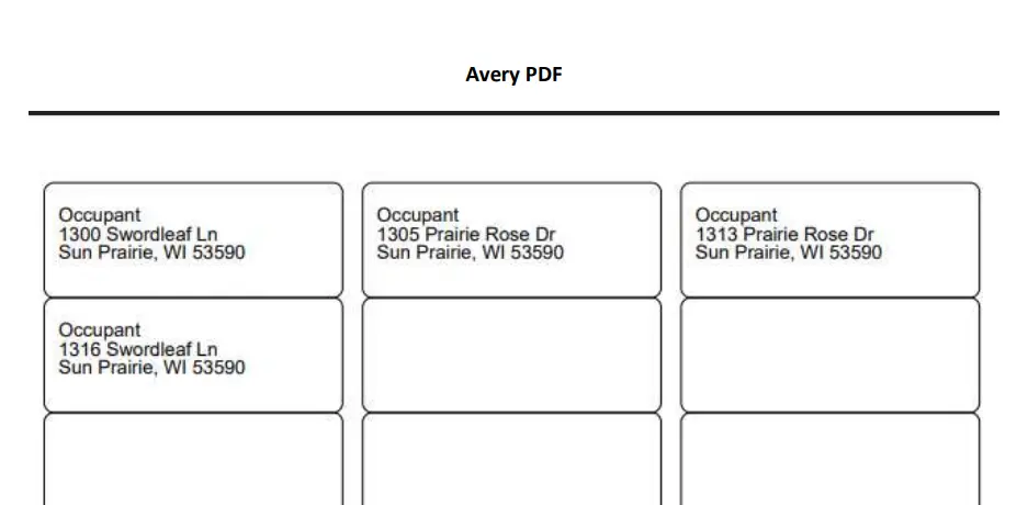 This section establishes the parameters for exporting a PDF document specifically formatted for Avery Label sheets.